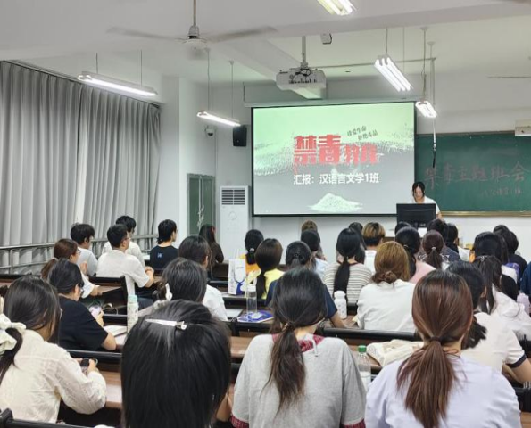 各班级结合专业特色,开展形式新颖的禁毒主题班会。2023级应用心理学1班通过禁毒小剧场,深入了解毒品危害;2024级汉语言文学2班聚焦新型毒品伪装与传播新动向,提升识别能力;2025级社会学1班系统梳理毒品属性与危害,结合案例强化拒毒意识。各班还通过真实案例、互动讨论等形式,揭露“提神醒脑”“一次不上瘾”等欺骗话术,筑牢学生思想防线。